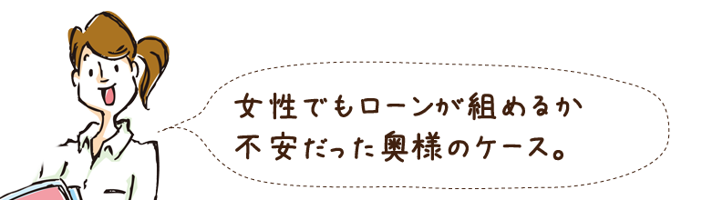 B様の奥様は、ご主人の単独年収だけでは住宅ローンを申し込む事に不安を感じていました。